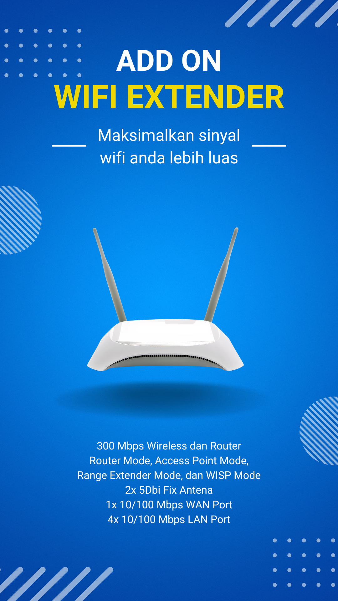 bermain game online, atau bekerja dari rumah. Selain itu, tambahan router ini juga dilengkapi